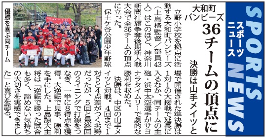 2021.01.13 | タウンニュースに掲載されました【神奈川新聞社旗争奪後期新人戦優勝】
