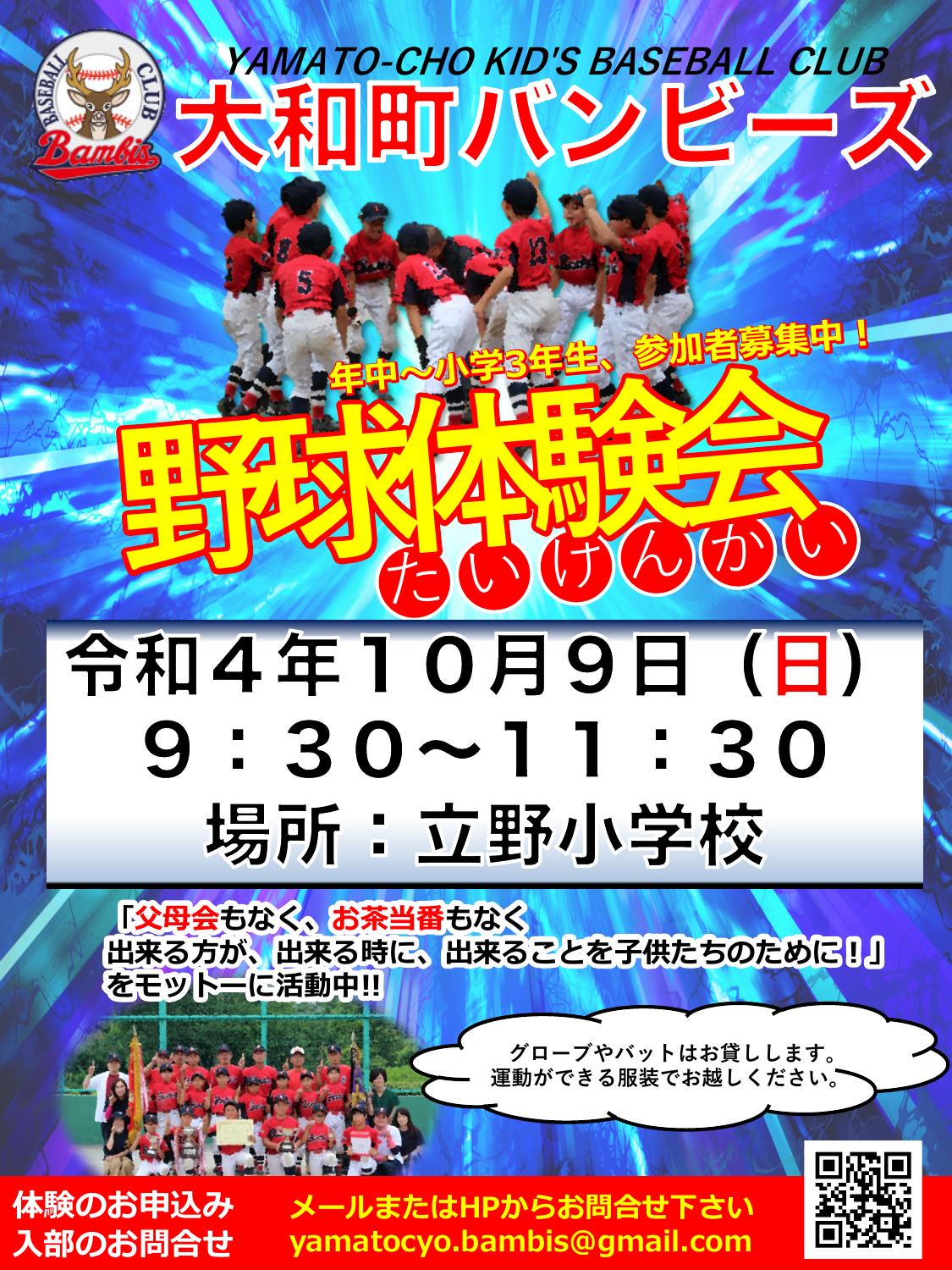 2022.09.28 | 体験会のお知らせ 10月9日@立野小学校